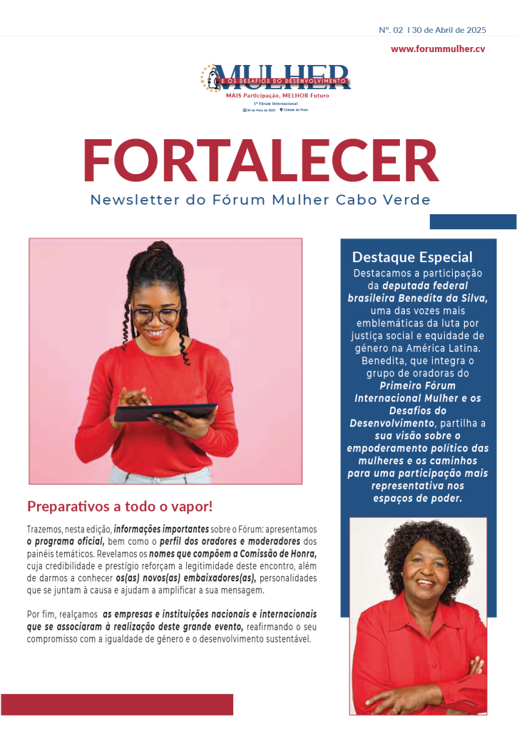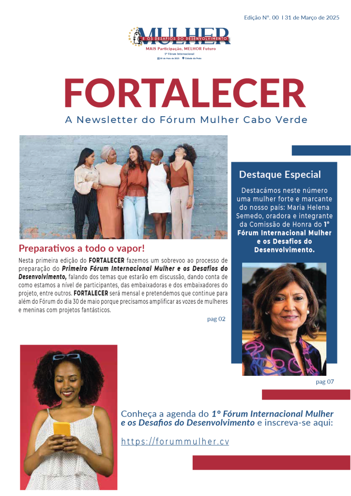 Diferentes organizações cabo-verdianas de mulheres promovem, a 30 de Maio de 2025, na Praia, o Fórum Internacional “Mulher e os Desafios do Desenvolvimento”, sob o lema “Mais Participação, Melhor Futuro”, anunciou hoje uma das promotoras, Maria de Ressurreição Graça.